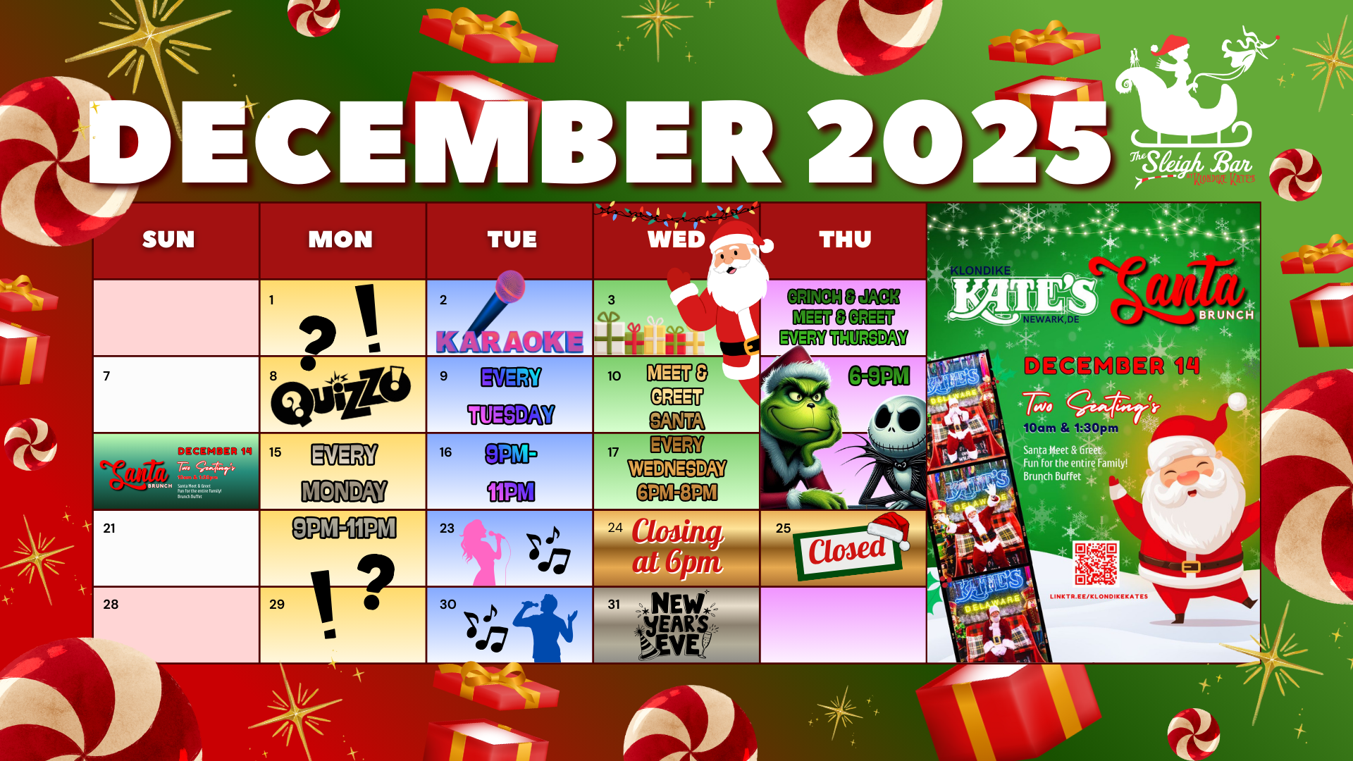 Looking for the best Christmas Bar experience? Visit The Sleigh Bar at Klondike Kate’s. We’ll make your holiday season bright with each sip. See why we’re the go-to spot in Newark for festive fun and cheer.